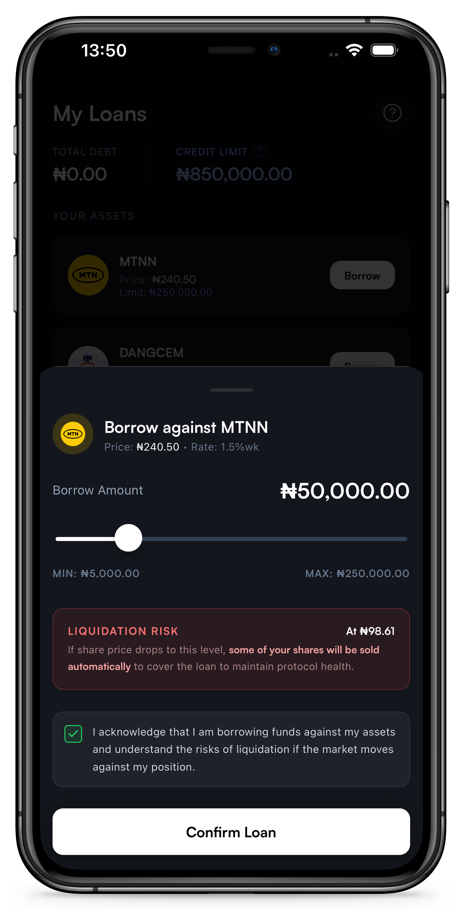 Traditional lending in Nigeria takes weeks. On xNG, borrow against your portfolio in seconds — no paperwork, no credit checks.
